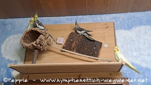 Cuddles hatte sich in Heidi verliebt und folgt ihr sofern es ihm als Nicht-Flieger möglich ist. Eigentlich kamen Heidi & Gary als Abgabevögel zu mir und Gary macht es auch nicht viel aus, dass Cuddles ihm seine Heidi ausgespannt hat. Und da Gary, aufgrund seines Alters, auch nicht mehr so top fliegen kann, darf er mit in der Handicap-WG wohnen.