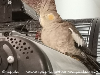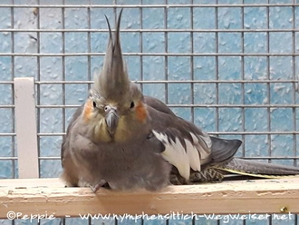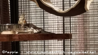 Hallo, ich bin Thira und stamme aus einem Messi-Haushalt. Nach einer Beschlagnahmung wurde ich Anfang des Jahres in der Außenvoliere in einem Tierpark untergebracht, was ich fast nicht überlebt hätte. Aufgrund meines stark verkrüppelten Beinchens konnte ich mich nur am Boden aufhalten und nur schwer die oben hängenden Futterspender anfliegen. Aufmerksame Besucher machten das Personal aufmerksam, die dann ein Abgabeinserat aufgaben. Susanne wurde auf das Inserat aufmerksam, hat mich gerettet und zu einem vogelkundigen Tierarzt gebracht. Der war völlig schockiert über meinen Zustand; er hat noch versucht, mein verdrehtes Beinchen zu retten, aber das hat nicht geklappt und musste deswegen amputiert werden.