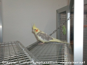 Hallo, ich heiße Tiffi und bin ca. 7 Jahre alt. Tanja (biene78) hat mich nach vielen Versuchen endlich aus meiner ursprünglichen "Einzelhaltung" herausbekommen, in der nebenher lediglich ein Kanarienvogel lebte. Tanja hat mich dann - als die nötige Kotuntersuchung (auf Bakterien, Pilze + Parasiten) erledigt war - am 16. März 2013 an Peppie übergeben, die für mich ein schönes, neues Zuhause mit Artgenossen finden sollte. Vorübergehend durfte ich mit ein paar Nymphies aus der Handicap-Riege in der Villa Sunrise einziehen. Aber aufgrund meiner auffälligen Füße und etwas Komischem oberhalb der Kloake hat mich Peppie dann ein paar Tage später doch noch persönlich dem vogelkundigen Doc vorgestellt. Der stellte dann fest, dass ich mit 142 g einfach zu fett war und das Komische oberhalb der Kloake war ein Fettknubbel. Außerdem hatte ich starke Druckstellen unter den Füßen, die behandlungsbedürftig waren. In den ersten Tagen habe ich dann auch etwas an Gewicht verloren und weil mir das tägliche Einfangen, zum Einsalben meiner Füße, zu lästig war, bin ich einfach mit in die Sunday-City-Voliere gehüpft; denn da wollte Peppie mich nicht täglich rausfangen, um nicht so viel Unruhe zu verbreiten. Peppie war aber ganz zufrieden mit mir, weil ich auch immer schon freiwillig am Freiflug teilgenommen habe; wenngleich ich auch eher wie eine Hummel herumbrummelte .... aber, was ja nicht ist, kann ja noch werden.