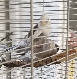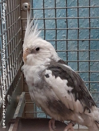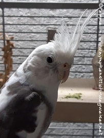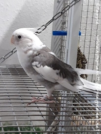 Ich bin Tipsy und Susanne hat mich im November 2018 in den Ebay-Kleinanzeigen entdeckt. Eine Bekannte der Familie, wo ich wohnte, hatte mich dort inseriert, weil ich ihnen so leid getan habe. Mein Leben war bislang nicht sehr schön, denn ich habe 2 Jahre in einem Käfig gelebt, der auf dem Fußboden stand, in einem kargen Raum, wo es keine Anflugmöglichkeiten gab. Mein Mitgenosse hat sich gleich beim ersten Freiflug das Genick gebrochen und auch ich hatte einen Unfall. Ein vogelkundiger Tierarzt stelle fest, dass beide Flügel angebrochen waren und nicht behandelt wurden, weswegen ich auch nicht mehr fliegen kann. Bei Susanne gab es eine nette Henne, aber ich konnte ihr ja nicht folgen. Ich habe dann immer geschrien und mich im Kreise herumgedreht, weil ich total Verlustängste hatte.