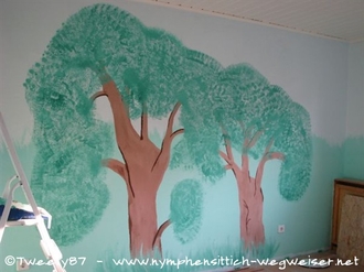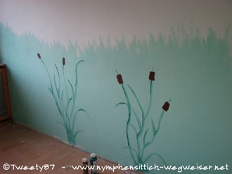 Zur Gestaltung der Wände haben wir schon viele Informationen im Punkt "Farben im Lebensraum" zusammen getragen. Farbige Wände mit viel Grün, Blau und ein wenig hellem Gelb sind in jedem Fall eine große Bereicherung für Vögel - egal, ob man nun künstlerisch begabt ist oder auch nicht.