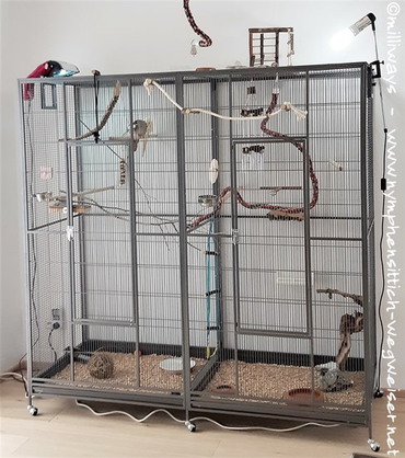 Die Verdrahtung ist an den langen Seiten längs und an den kurzen Seiten quer. Gesunde Vögel haben keine Probleme am Längsgitter zu klettern. Es erfordert jedoch mehr Kraft, was bei Nymphensittichen in Wohnungshaltung positiv zu betrachten ist. Sie sollten sich so viel wie möglich bewegen.